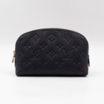 A practical Cosmetic Pouch PM from Louis Vuitton. Made with navy blue monogram empreinte leather, zipper closure and washable textile lining. Small and useful accessory for travels or everyday use. Current retail price is €640. Receipt price is €480.