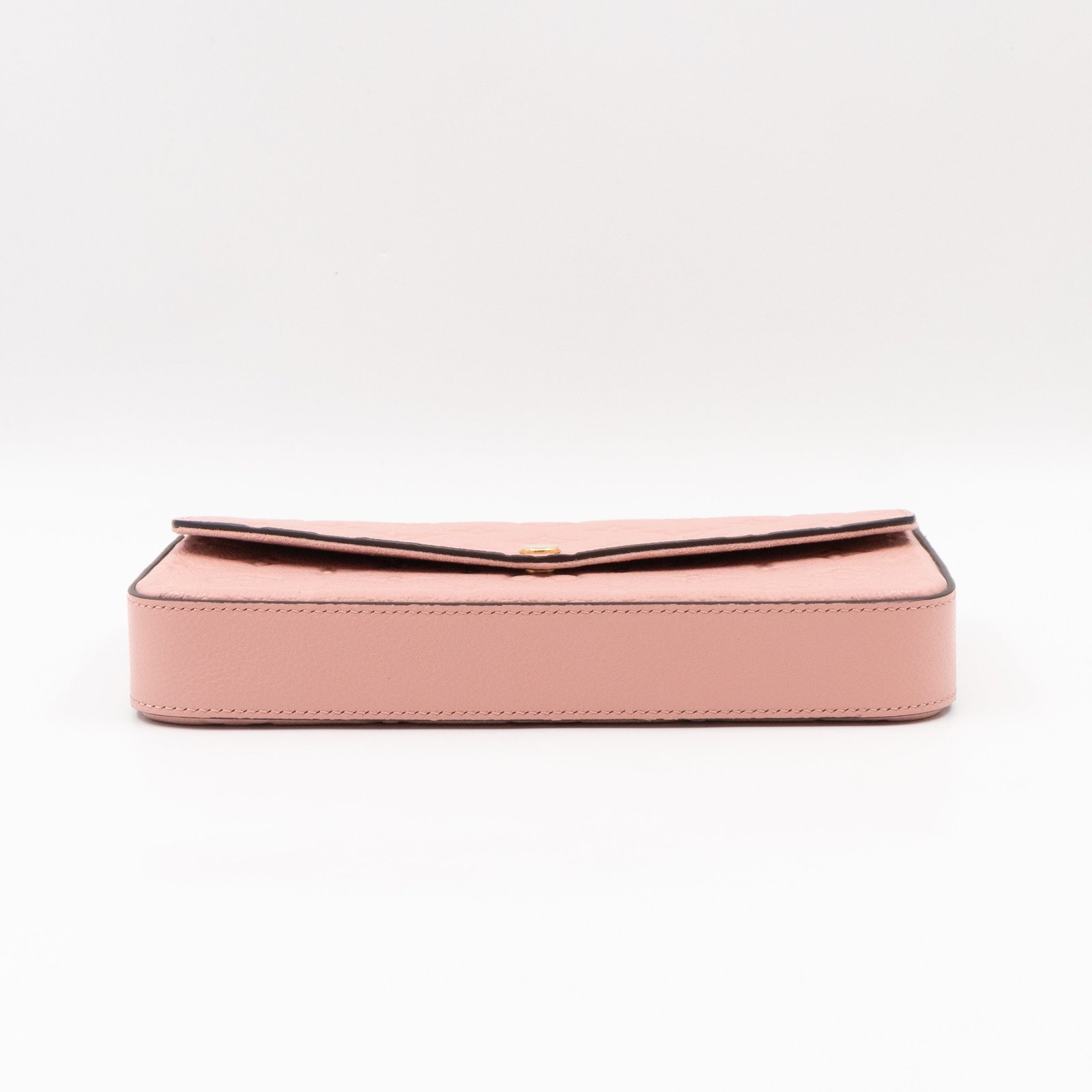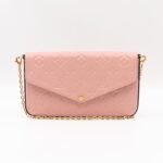 A great daily and evening bag from Louis Vuitton, the Pochette Felicie. Made with monogram empreinte leather in rose poudre with a matching lining, and gold-tone hardware. Felicie is a versatile crossbody bag, use it crossbody over the shoulder, or remove the chain and it turns into a clutch. It comes with two removable pockets, one zipper pocket for coins and one pocket for cards. Receipt price is €1250 and current retail price is €1300.