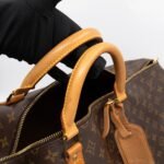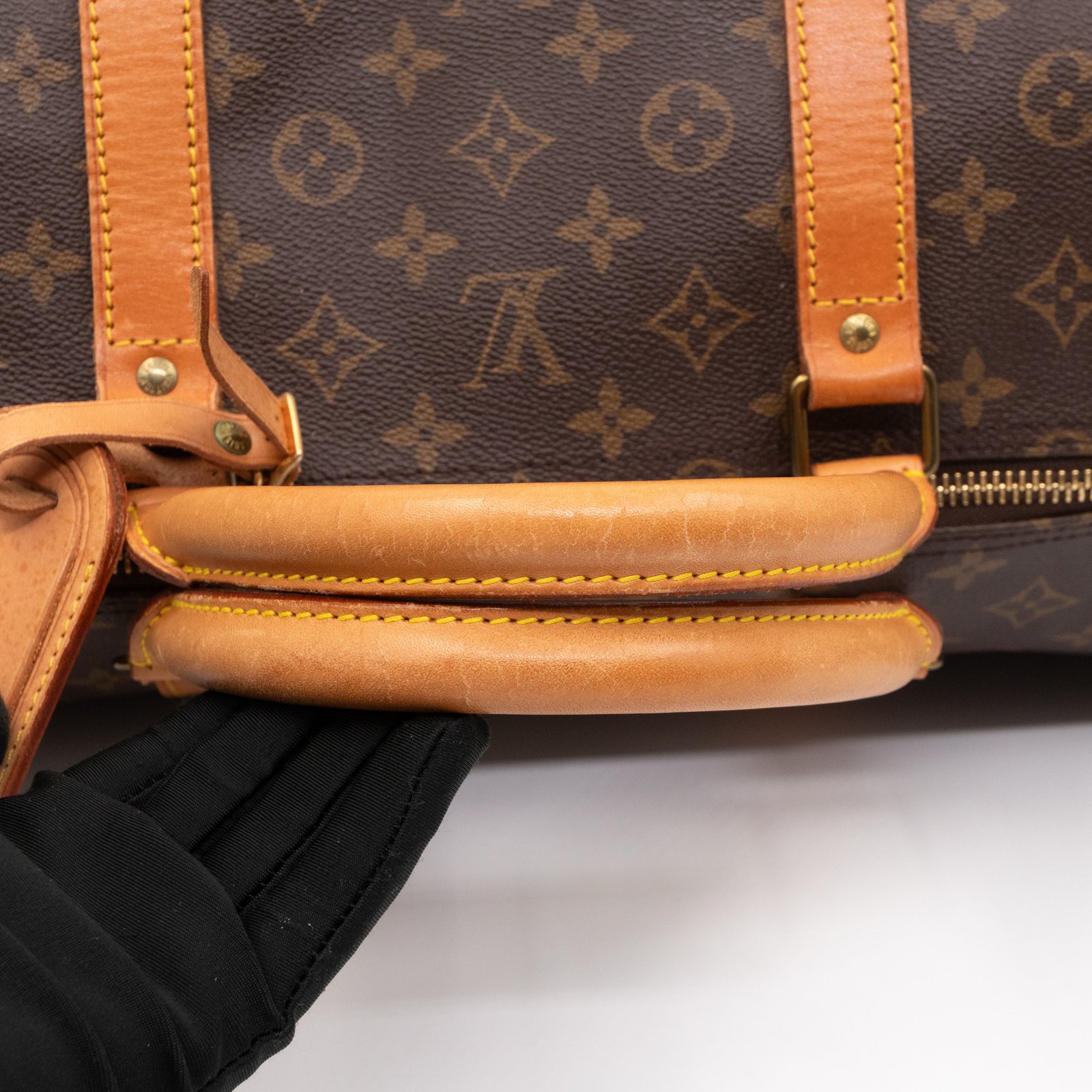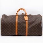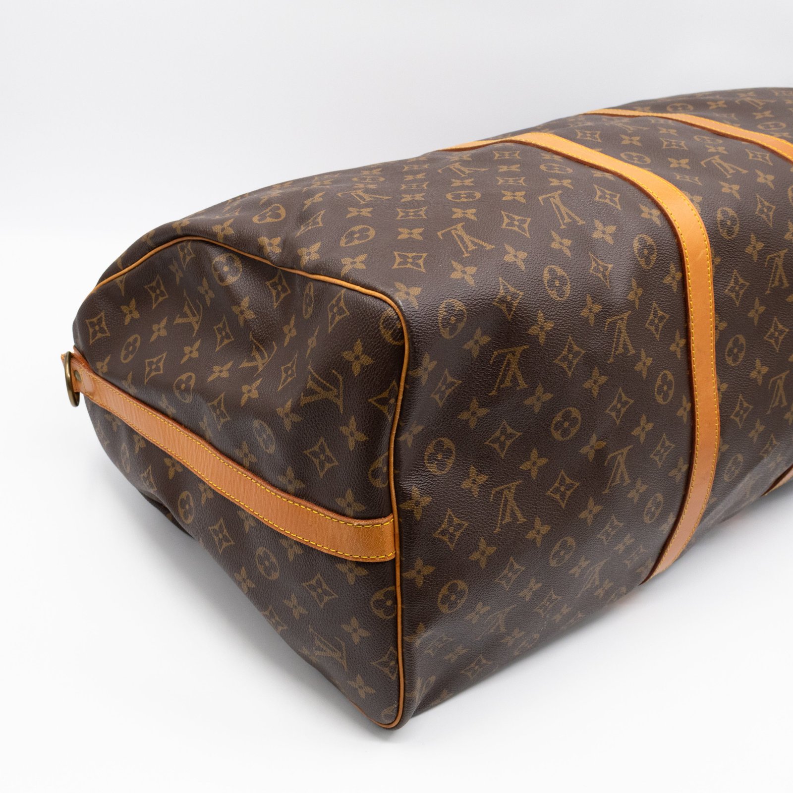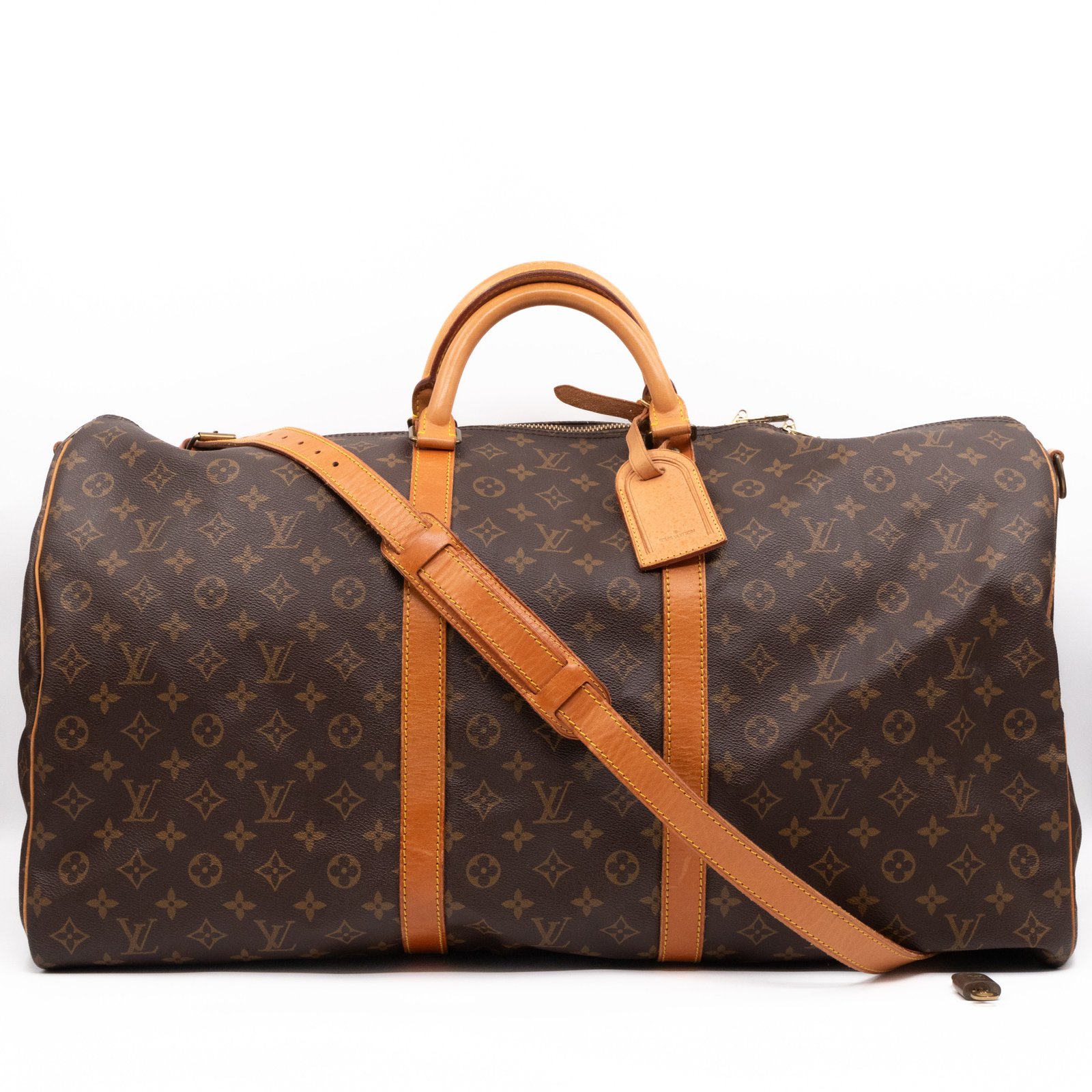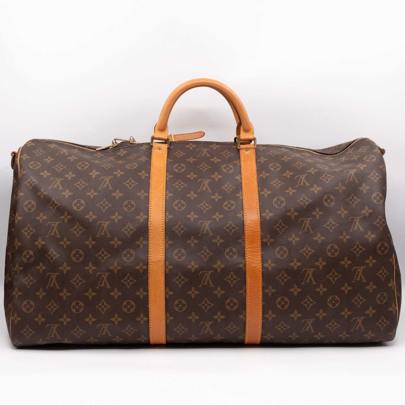 An icon since the appearance in 1930, the Louis Vuitton Keepall embodies the spirit of modern travel. This is the largest size 60 Bandouliere, a vintage bag. It is made with monogram canvas and has a shoulder strap for easy carrying. Attached a luggage tag on the handle drop. Retail price is €2550.