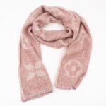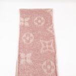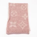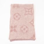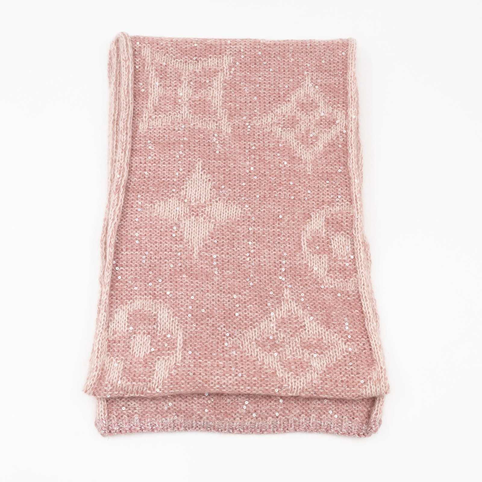 This is a Louis Vuitton Mohair and Nylon blend monogram glitter scarf in light pink. This scarf features a tonal Louis Vuitton monogram embellished with iridescent sequins. Get warm and cozy with this fabulous scarf!