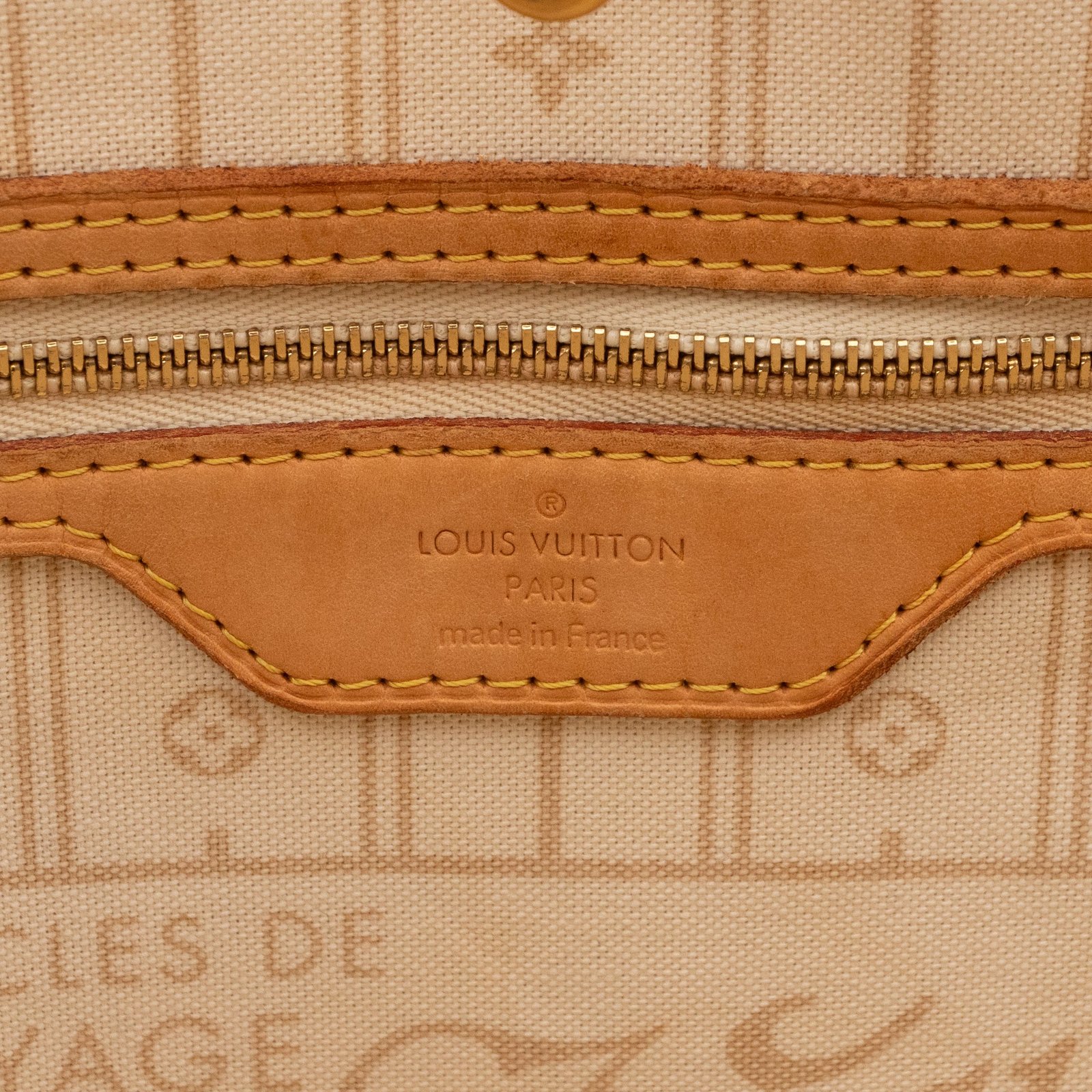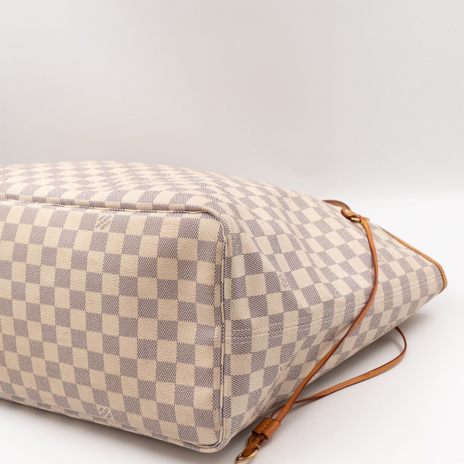 Always popular Louis Vuitton Neverfull in GM size. Made with beautiful damier azur canvas with beige color inside lining. The GM is the largest of the series, a size that easily fits everything and then some. Great choice for everyday use, the bag is light and large. Retail price €1550.