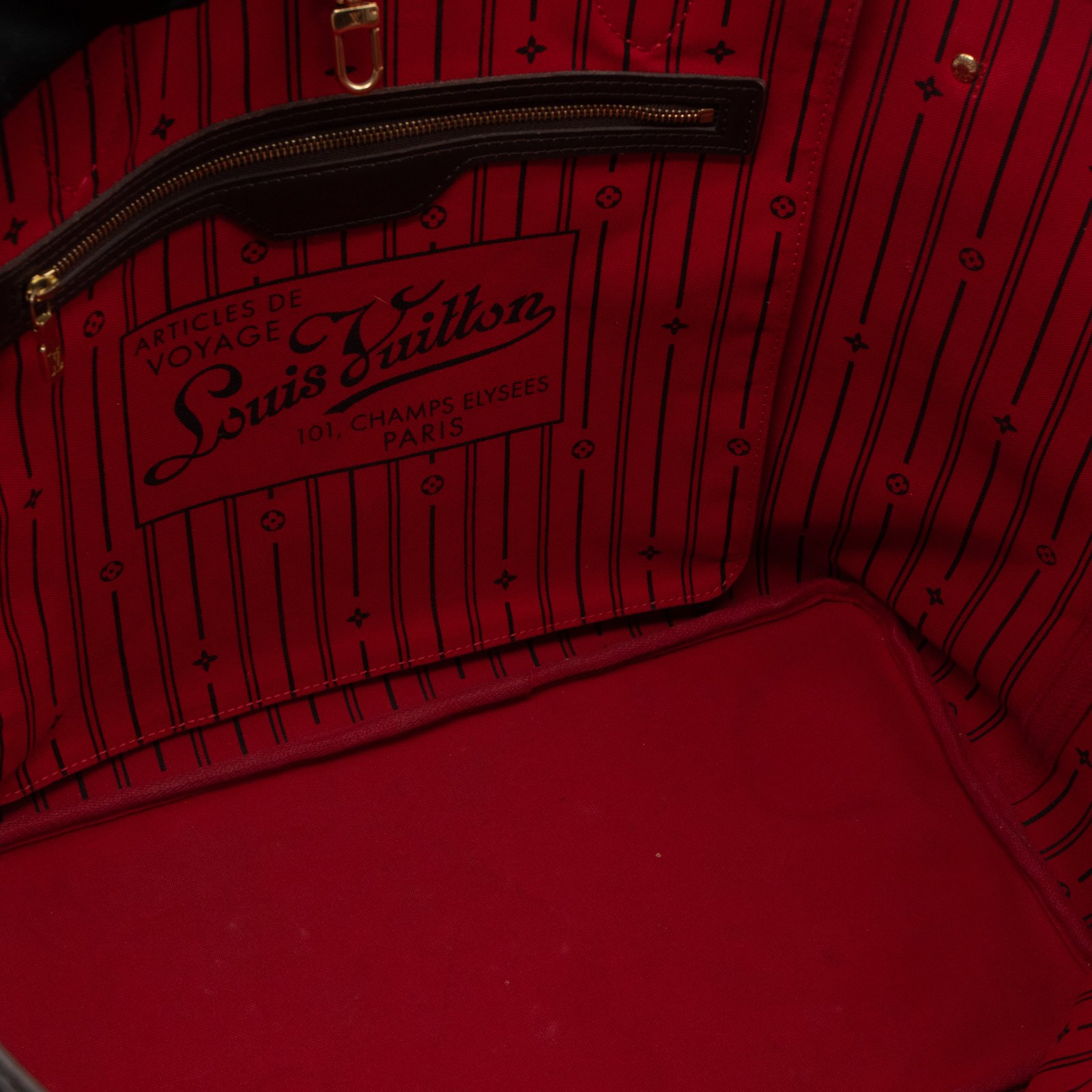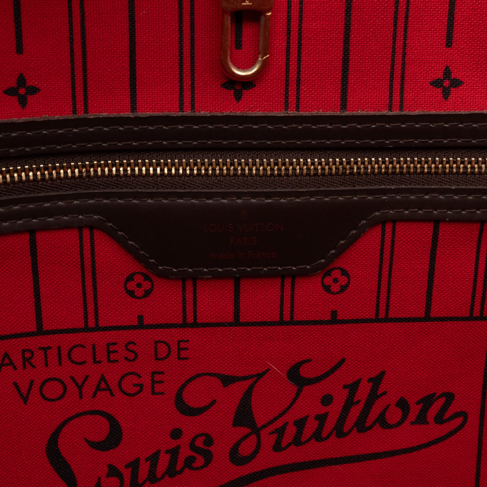 Always popular Louis Vuitton Neverfull in GM size. Made with beautiful Damier Ebene canvas with cherry red color inside lining. The GM is the largest of the series, a size that easily fits everything and then some. Great choice for everyday use, the bag is light and large. Retail price is €1550.