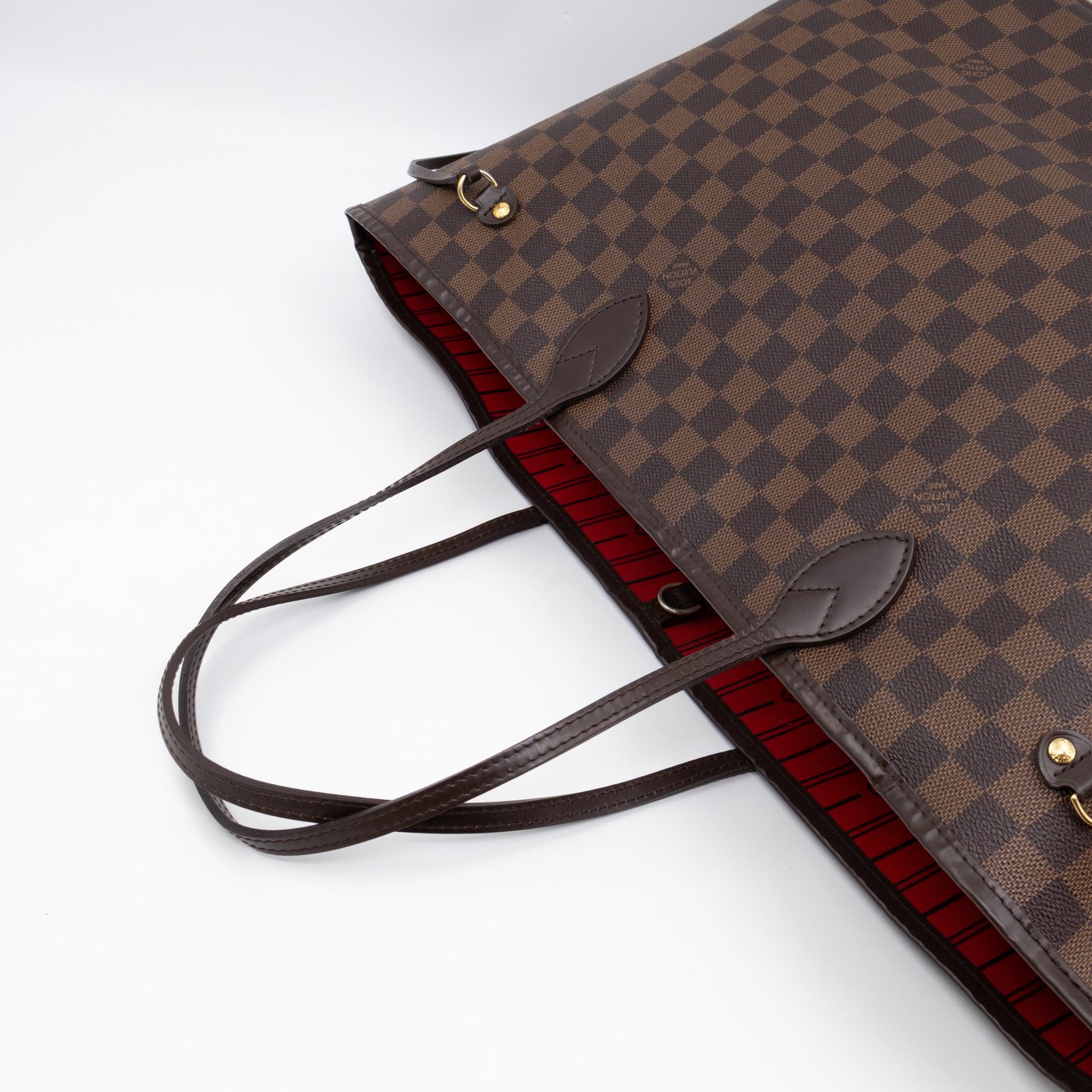 Always popular Louis Vuitton Neverfull in GM size. Made with beautiful Damier Ebene canvas with cherry red color inside lining. The GM is the largest of the series, a size that easily fits everything and then some. Great choice for everyday use, the bag is light and large. Retail price is €1550.