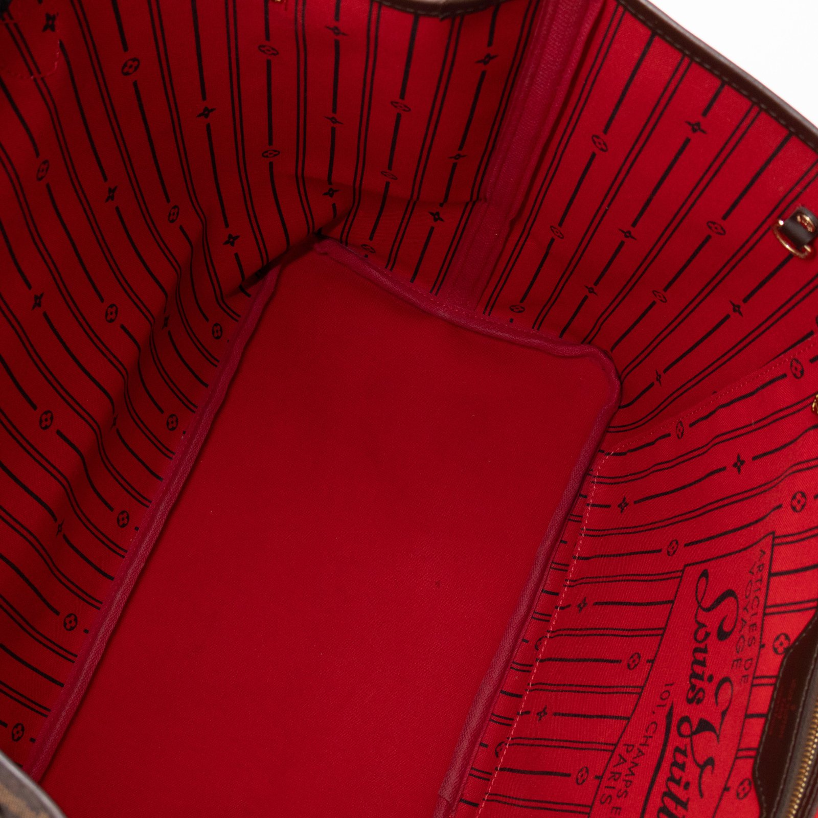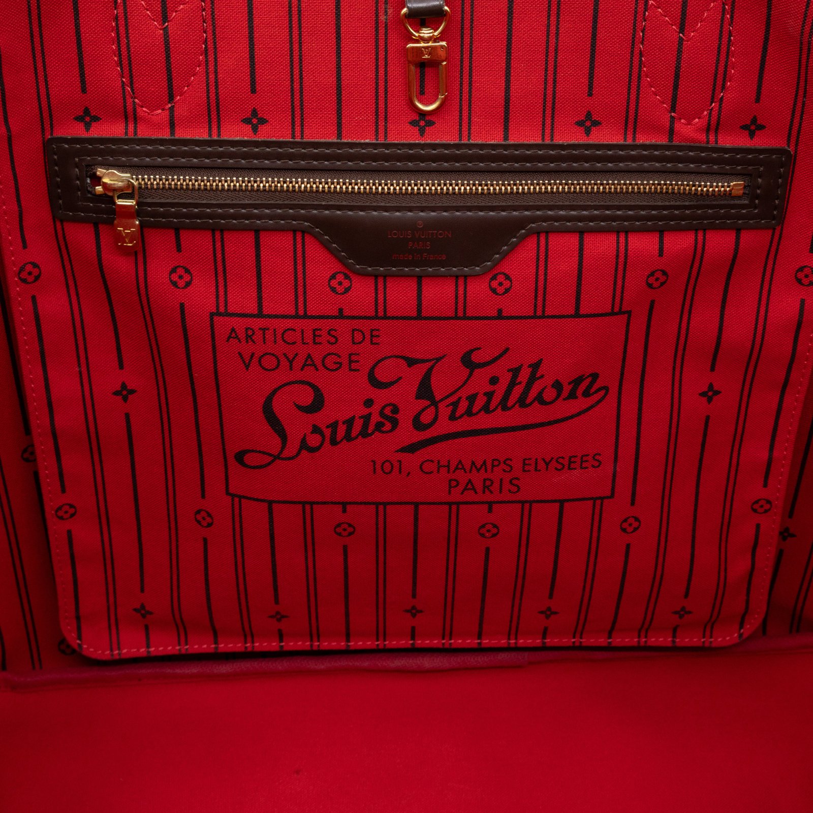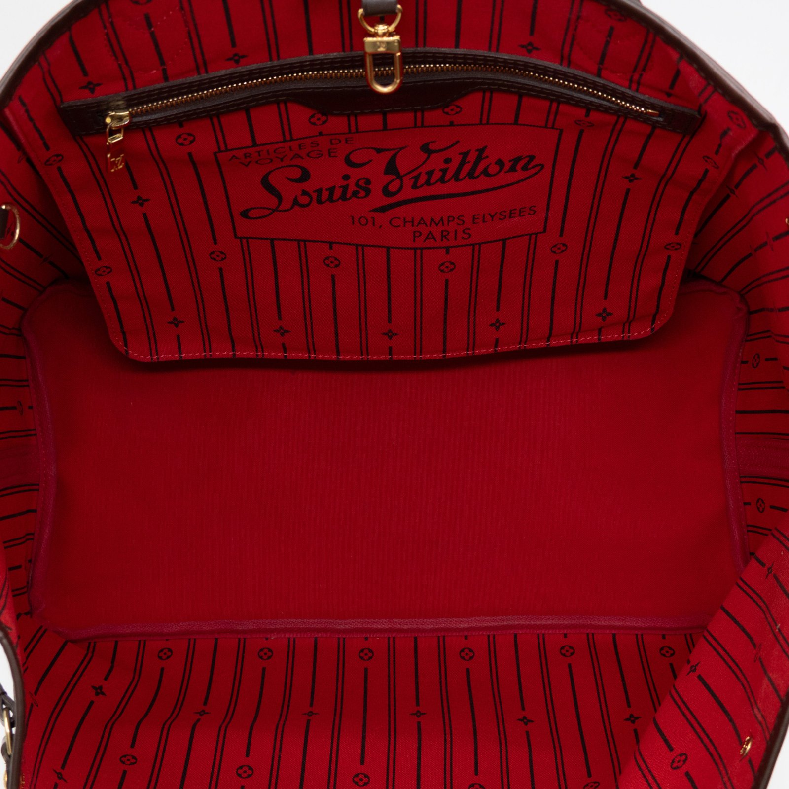 Always popular Louis Vuitton Neverfull in GM size. Made with beautiful Damier Ebene canvas with cherry red color inside lining. The GM is the largest of the series, a size that easily fits everything and then some. Great choice for everyday use, the bag is light and large. Current retail price is €1550.