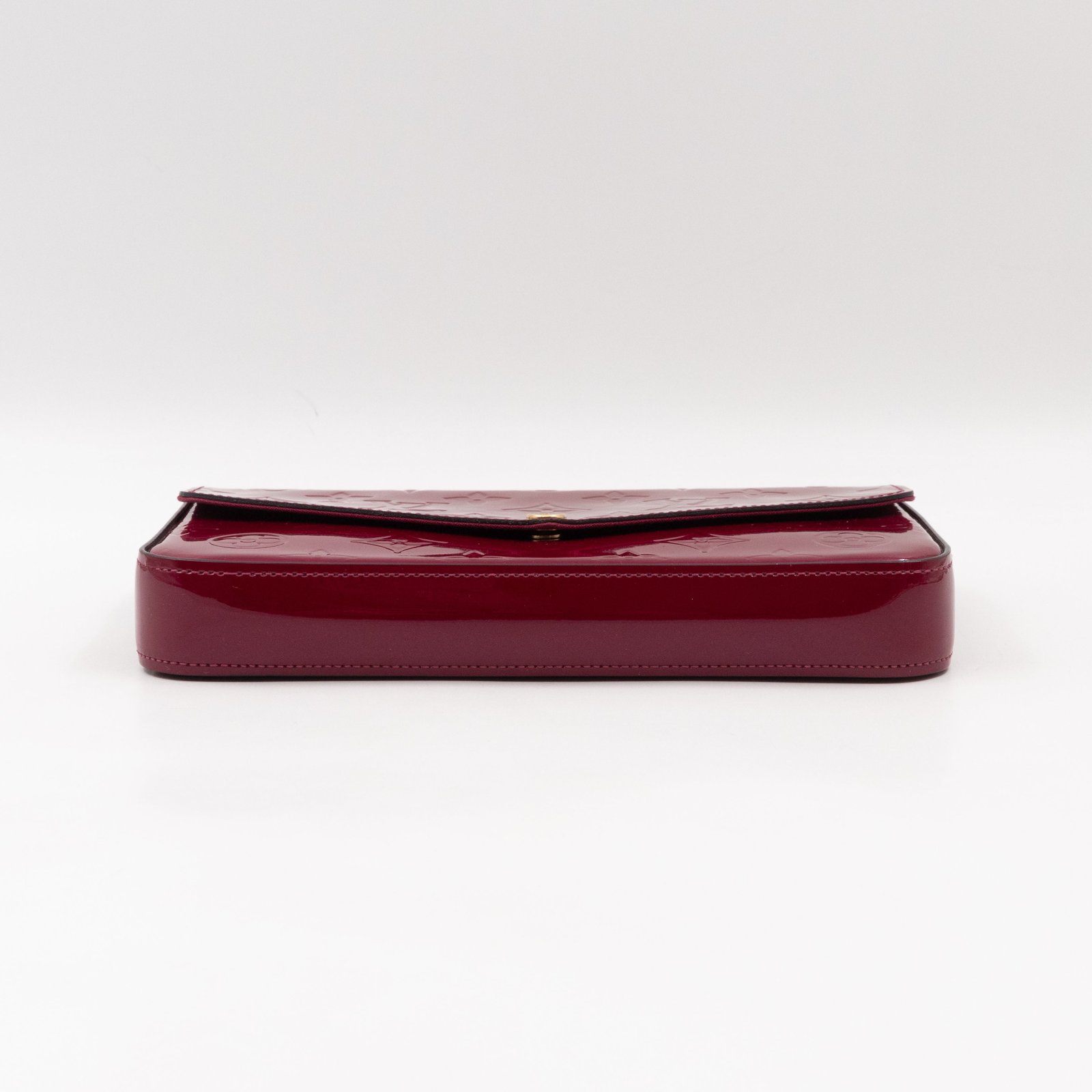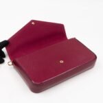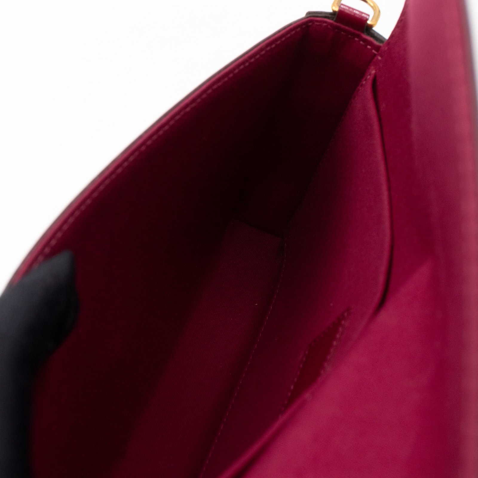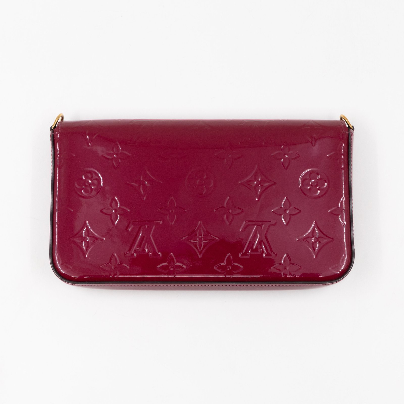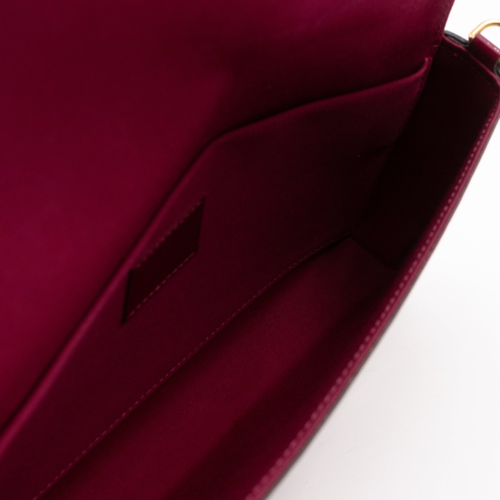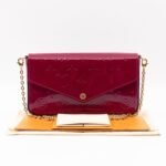 A great daily and evening bag from Louis Vuitton, the Pochette Felicie. Made with monogram vernis leather in magenta with a matching lining, and gold-tone hardware. Felicie is a versatile crossbody bag, use it crossbody over the shoulder, or remove the chain and it turns into a clutch. Retail price €1250.