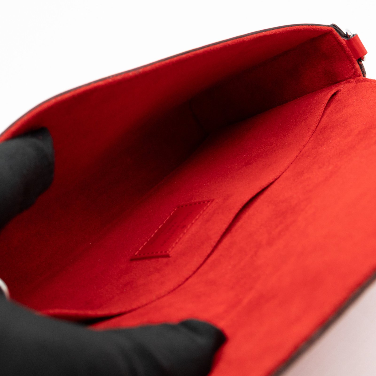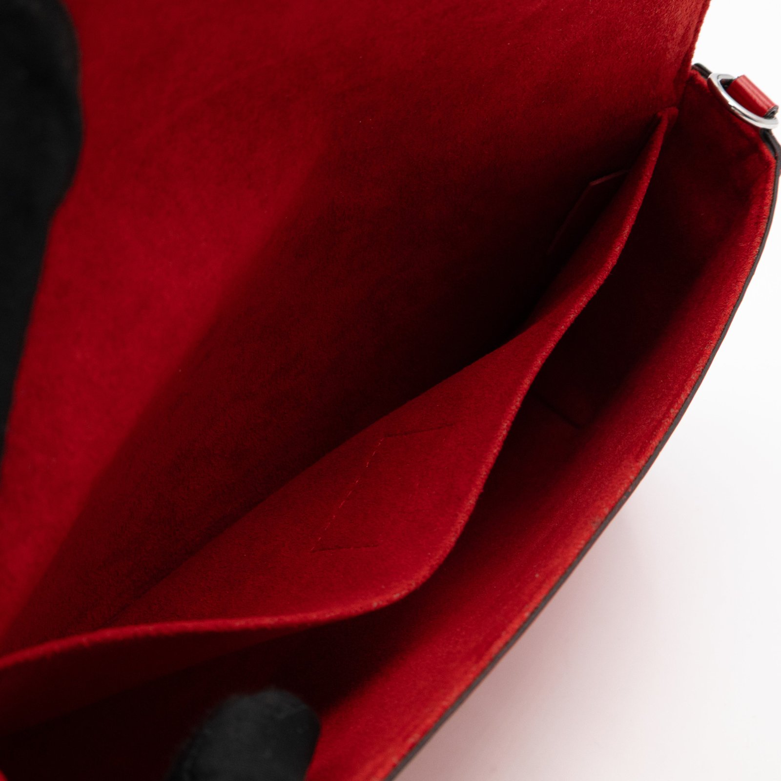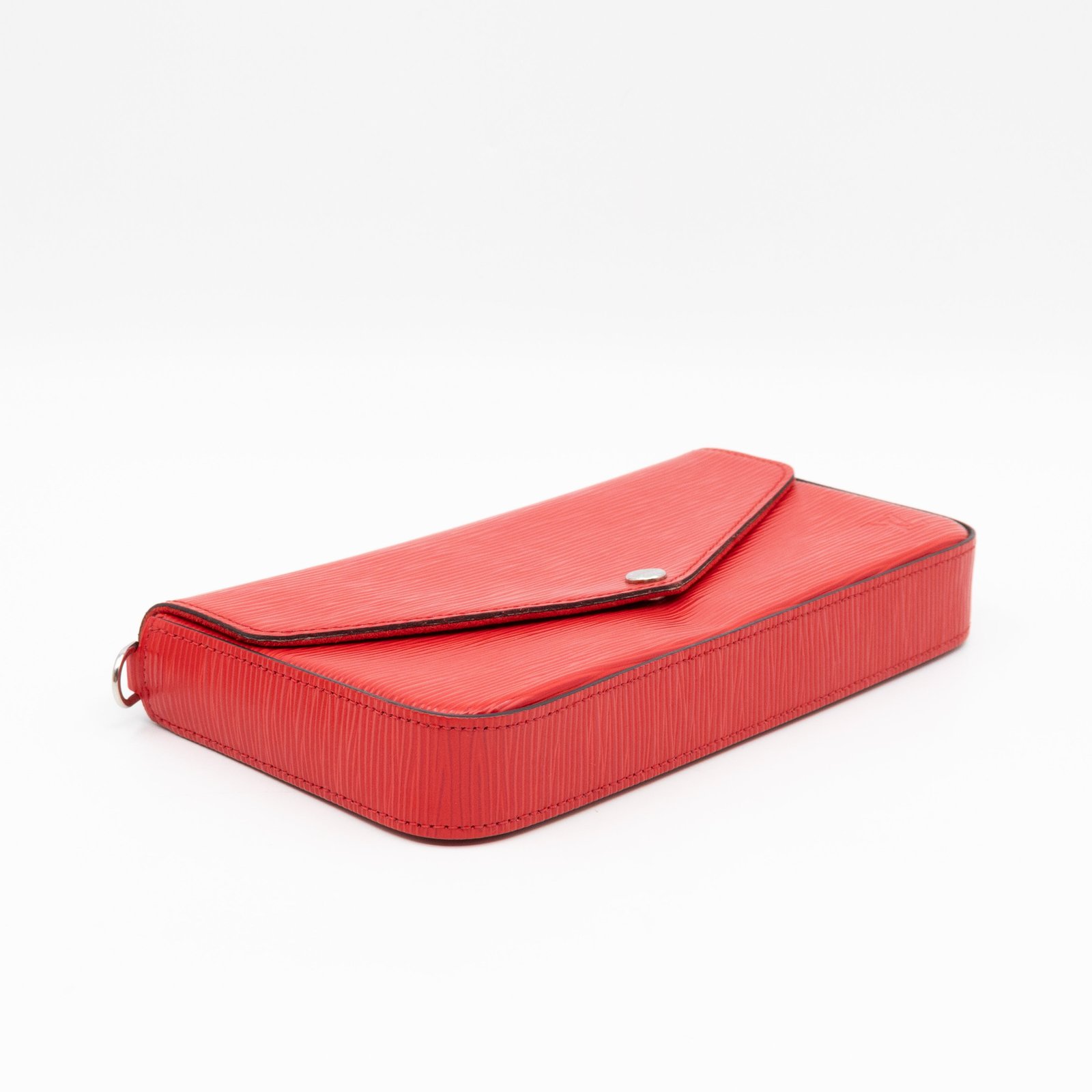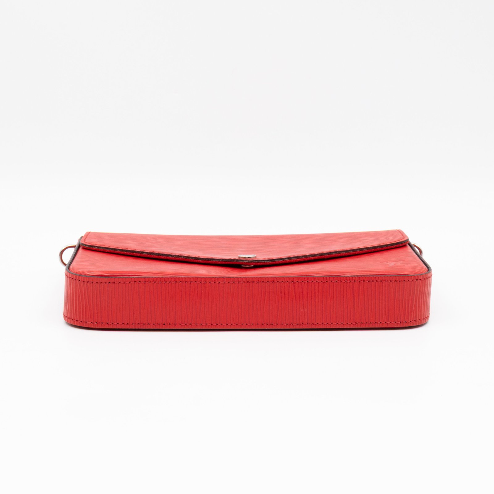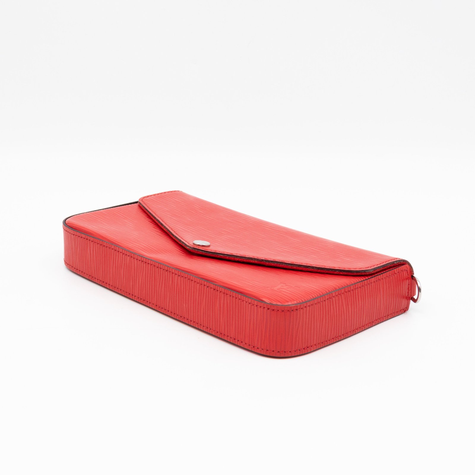 A great daily and evening bag from Louis Vuitton, the Pochette Felicie. Made with Epi leather in red coquelicot with matching inside lining, and silver-tone hardware. Felicie is a versatile crossbody bag, use it crossbody over the shoulder, or remove the chain and it turns into a clutch. It comes with two removable pockets, one zipper pocket for coins and one pocket for cards.