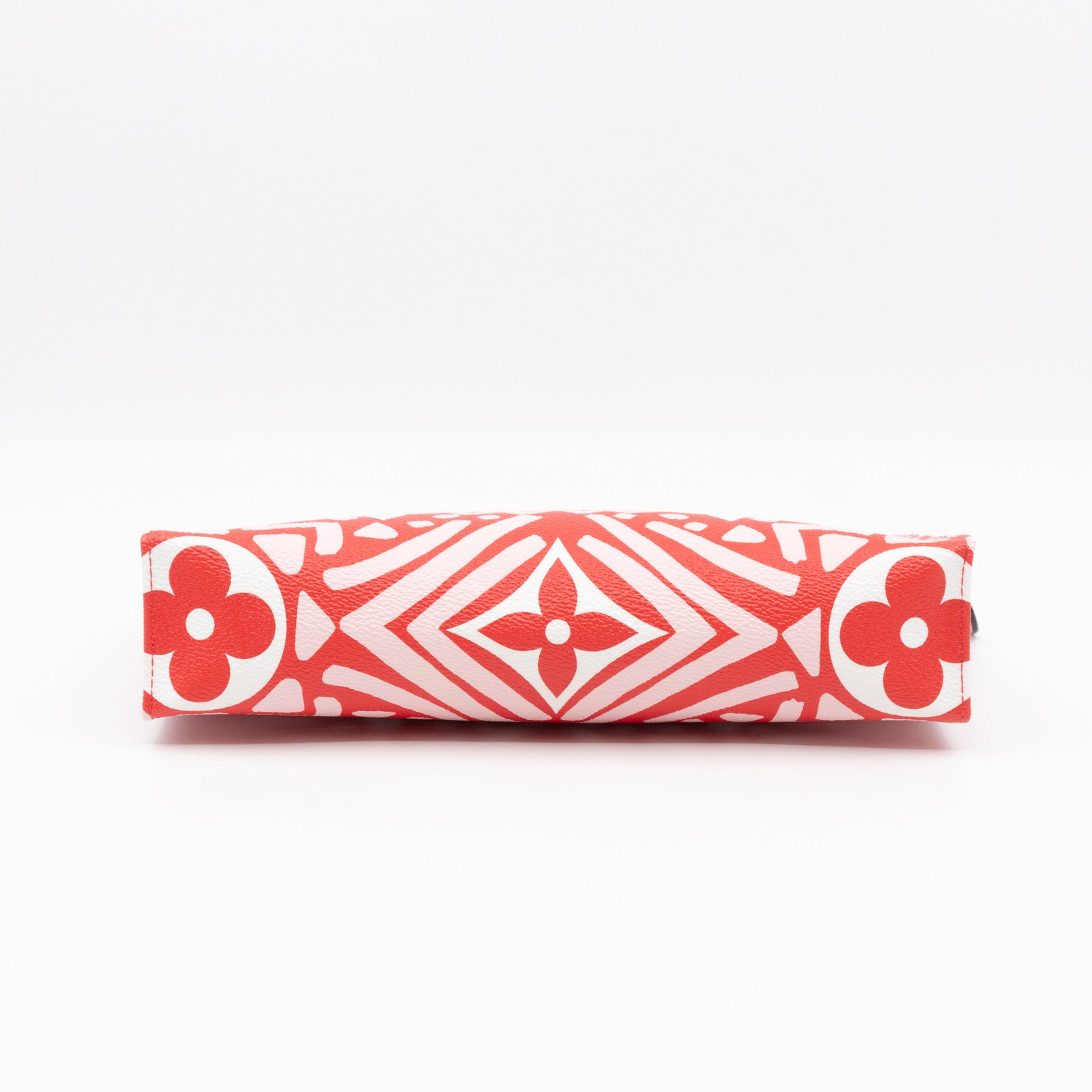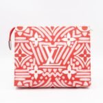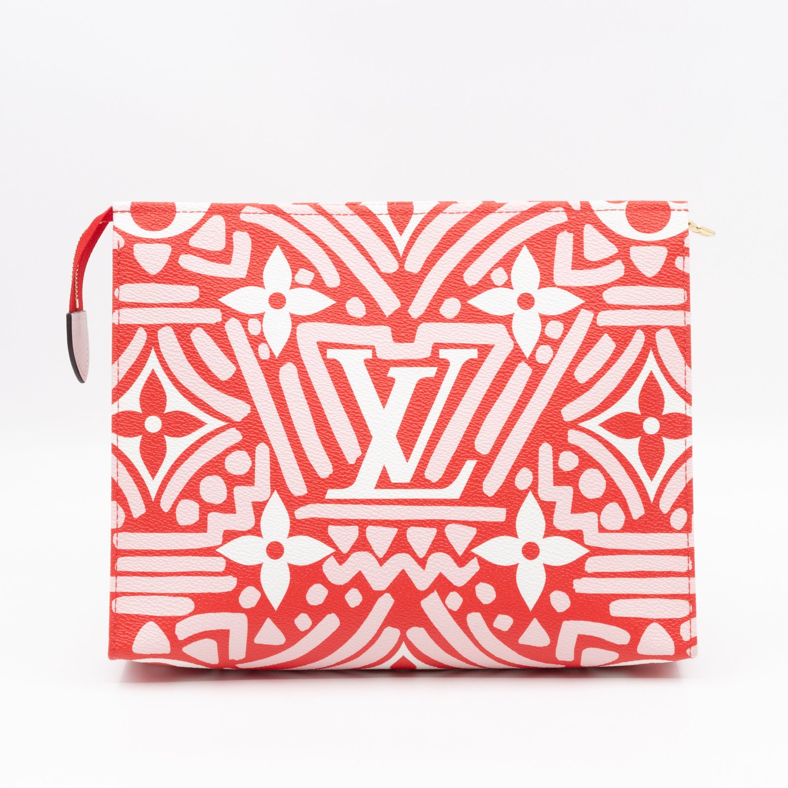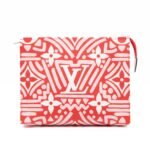 The basic Louis Vuitton travel accessory, Toiletry Pouch in larger size 26. Made of giant red crafty monogram canvas and coated interior lining. Simple and useful for everyday use, and an essential choice when traveling or working out.