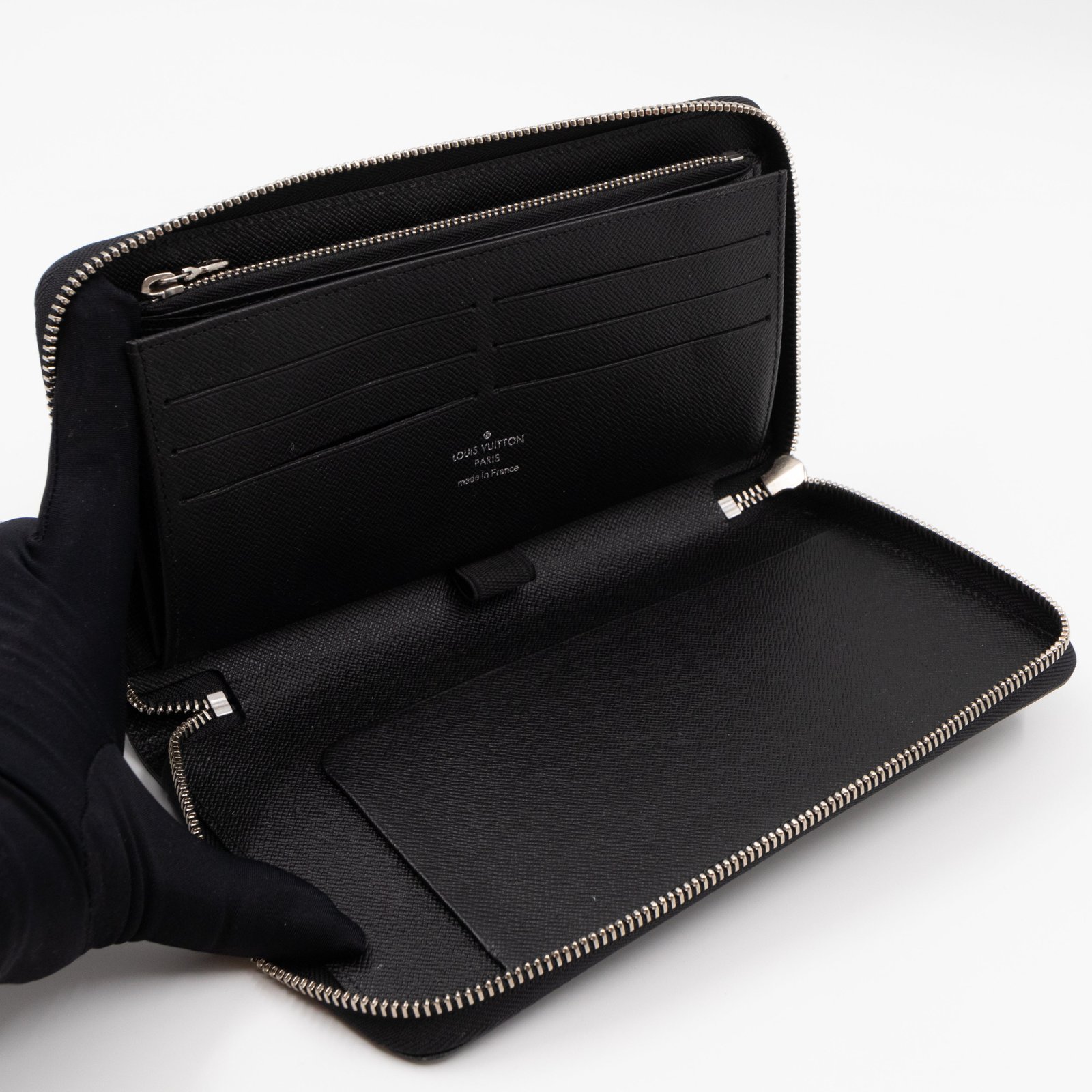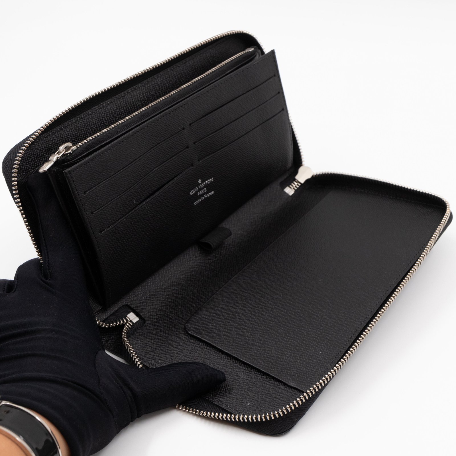 This is a organiser version of the classic Louis Vuitton Zippy wallet. It’s made with noir electric epi. This organiser opens up completely for easy access to several card slots, a zipper coin pocket, and it has enough space for a passport and boarding pass. Great when traveling. Retail price €765.